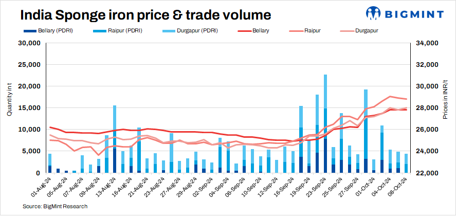 A total of 7,400 t of sponge iron deals were recorded on Tuesday compared to 8,870 t on 7 October.