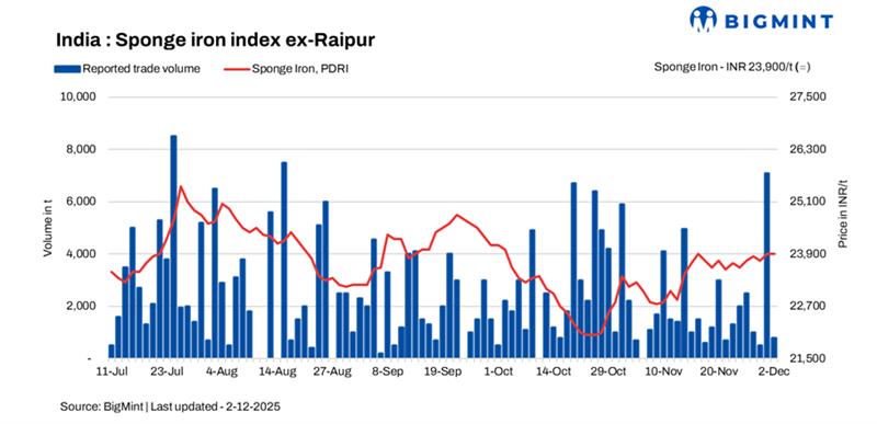India’s sponge iron market showed a mixed trend on 2 December 2025, with regional demand variations shaping overall sentiment. Market participants remained cautious and most buyers restricted inquiries to immediate requirements due to uncertainty about short-term price direction.