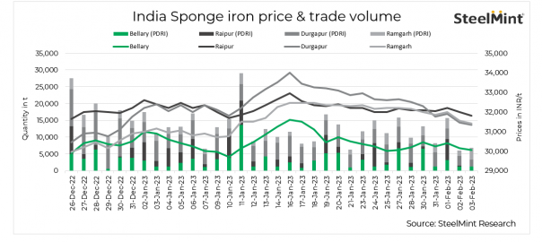 - Bellary: Sponge iron prices continued to fall further due to weak demand. Buyers weree hesitant to acquire material at current offers. Purchase enquiries also remained low today.