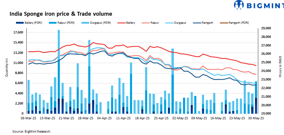 PDRI prices closed in the range of INR 22,350-25,600/t, while CDRI settled at INR 24,500-29,800/t.