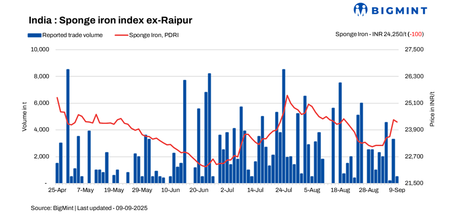 India: Sponge iron prices decline d-o-d; demand remains subdued – 9 Sep