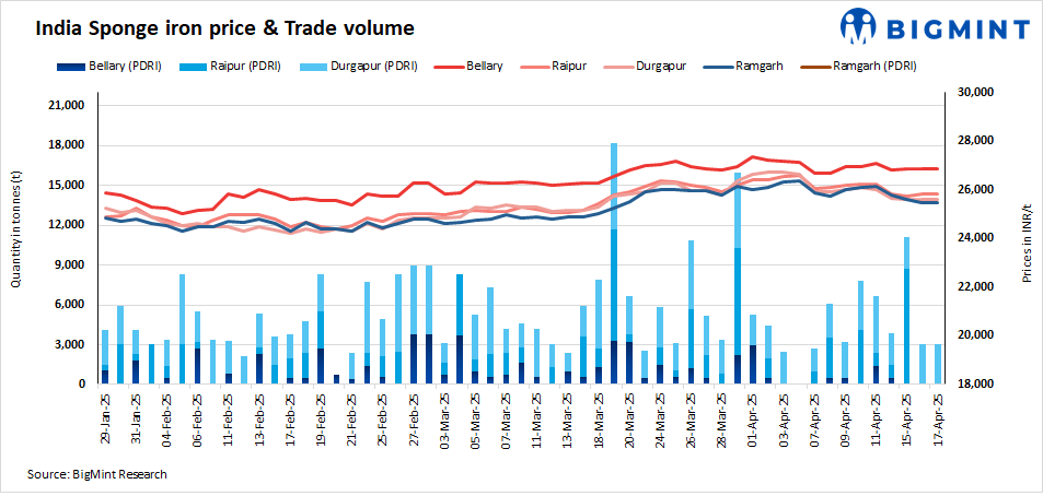 Sponge iron prices dropped by INR 100-300/t d-o-d across locations amid selling pressure and weakening market sentiments.