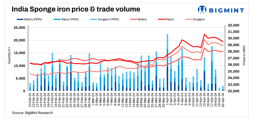 - Sponge iron prices fall by INR 100-850/t