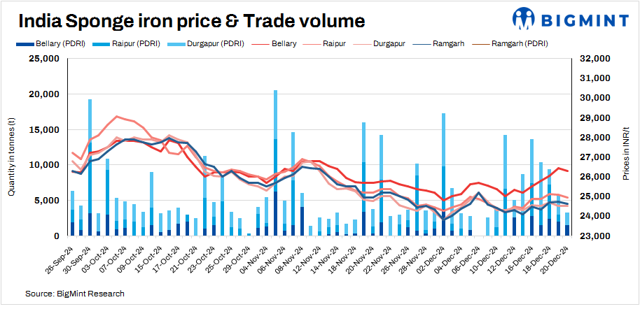 PDRI prices were assessed at around INR 23,600-27,500/t at close of trading today, while CDRI prices were at INR 26,550-30,800/t.