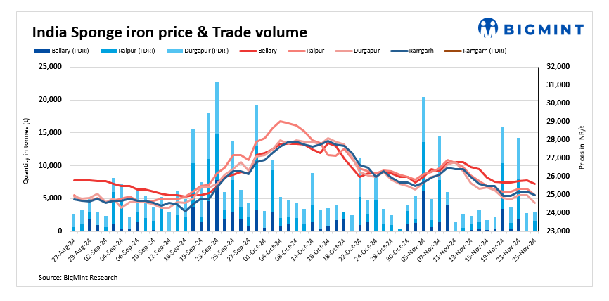 India: Sponge iron prices drop by INR 100-300/t d-o-d amid limited buying – 25 Nov
