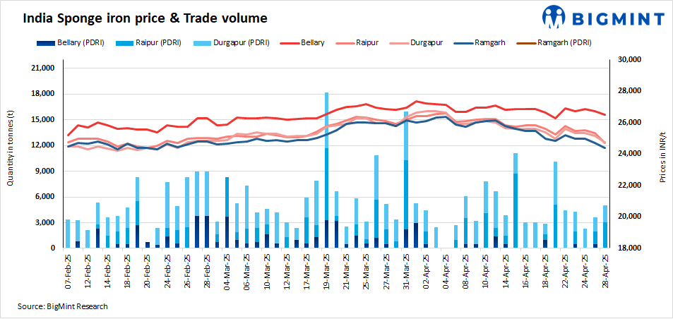 PDRI prices closed within INR 23,700-27,300/t, while CDRI settled at INR 26,200-31,200/t.