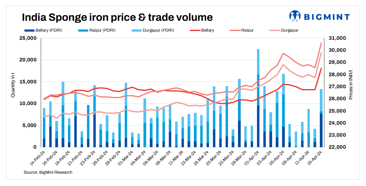 India: Sponge iron prices edge higher on rising steel prices, active demand – 15 Apr