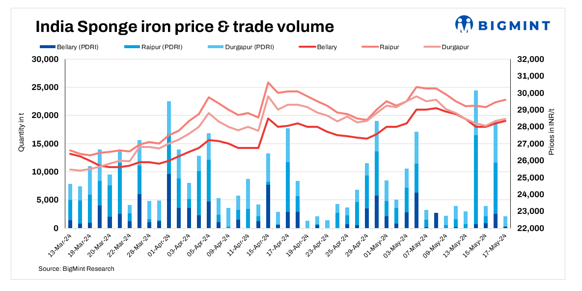 About 7,600 tonnes (t) of sponge iron transactions were recorded in the country on Friday compared to 30,370 t on 16 May.