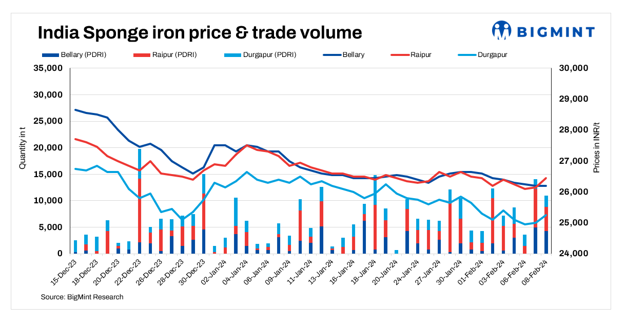 PDRI market prices closed at a range of INR 25,100-27,000/t and CDRI prices at INR 26,250-30,800/t.