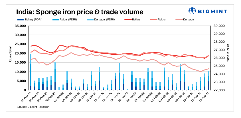 India: Sponge iron prices edge up on improved buying – 15 Feb