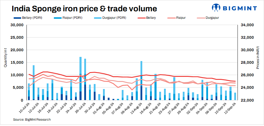 Approximately 5,100 t of sponge iron transactions were recorded, down from 7,300 t on 11 September.