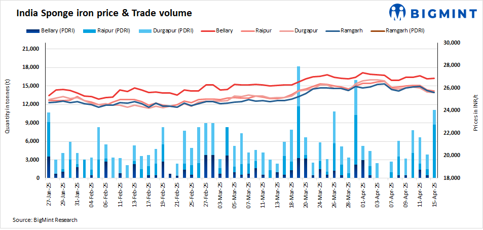 PDRI prices were assessed at INR 24,600-27,700/t, while CDRI settled at INR 27,250-32,100/t.