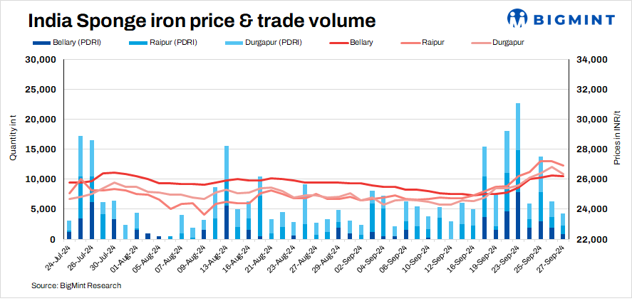 Only 6,900 t of sponge iron transactions were recorded in the country compared to 11,800 t on 26 September.
