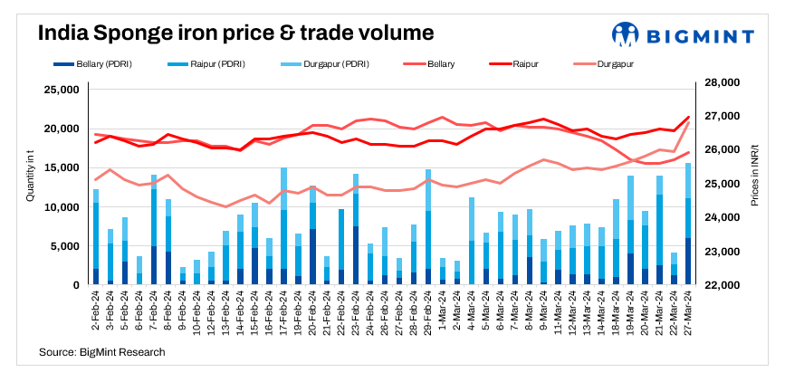 PDRI prices were assessed at INR 25,800-26,950/t, while CDRI prices stood at around INR 26,900-31,300/t.