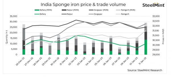Sponge iron prices in India rose in the range of INR 100-750/t in key locations owing to active demand and higher offers quoted by the suppliers. Producers kept prices on the higher side as several deals took place today following the rise in billets prices by INR 400-550/t d-o-d. Against this positive backdrop, buyers have started taking positions which resulted in a rise in trade volumes today.