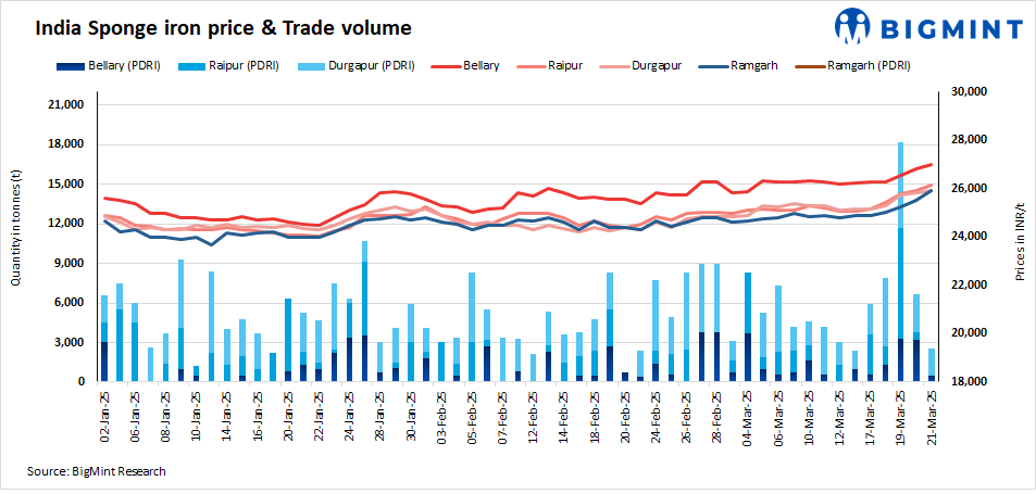 PDRI prices closed at INR 24,900-27,700/t, while CDRI was assessed at INR 27,400-31,600/t.