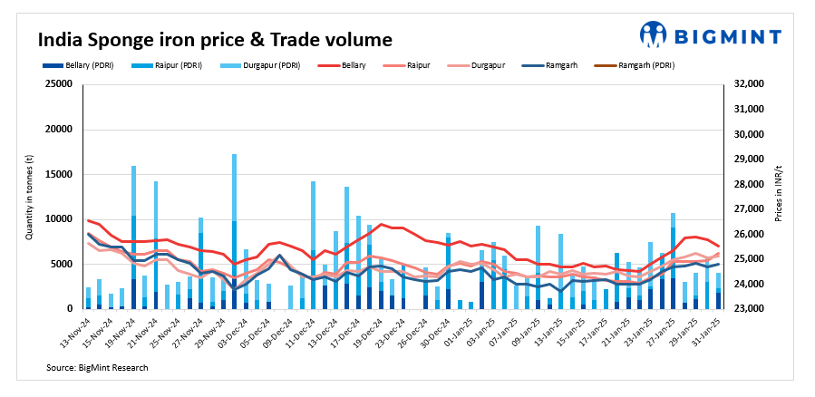 Deals for about 9,100 t of sponge iron were recorded today compared to 10,050 t on 30 January.