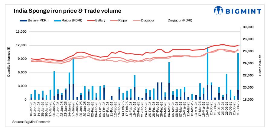 India: Sponge iron prices rise by INR 100-400/t d-o-d – 31 Mar