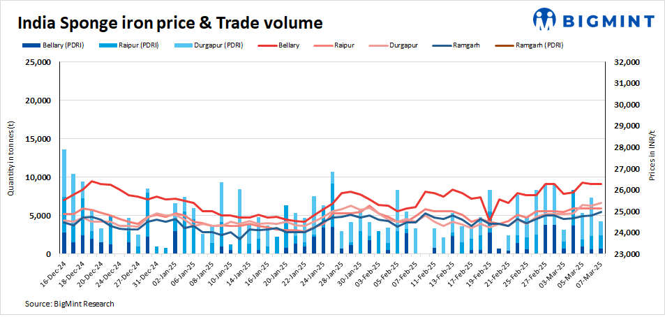 PDRI prices were assessed at INR 24,100-27,000/t at the close of trading, while CDRI tags stood at INR 26,600-31,000/t.