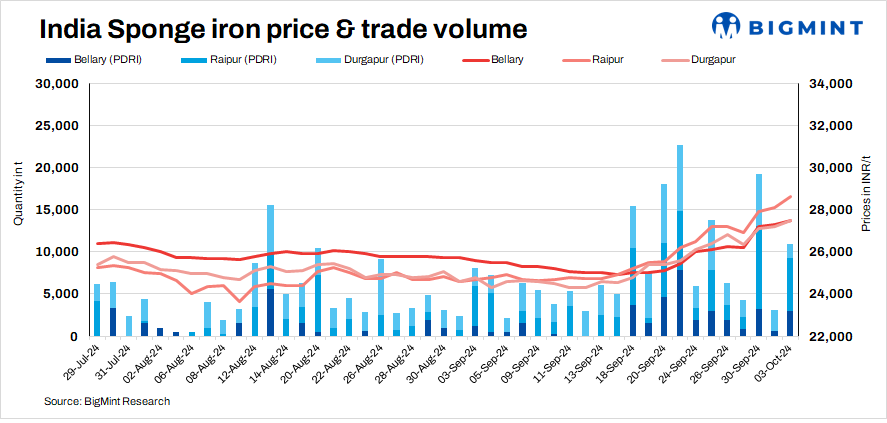 On Thursday, approximately 33,900 t of sponge iron transactions were recorded across the country, a significant increase from 5,450 t on 1 October.