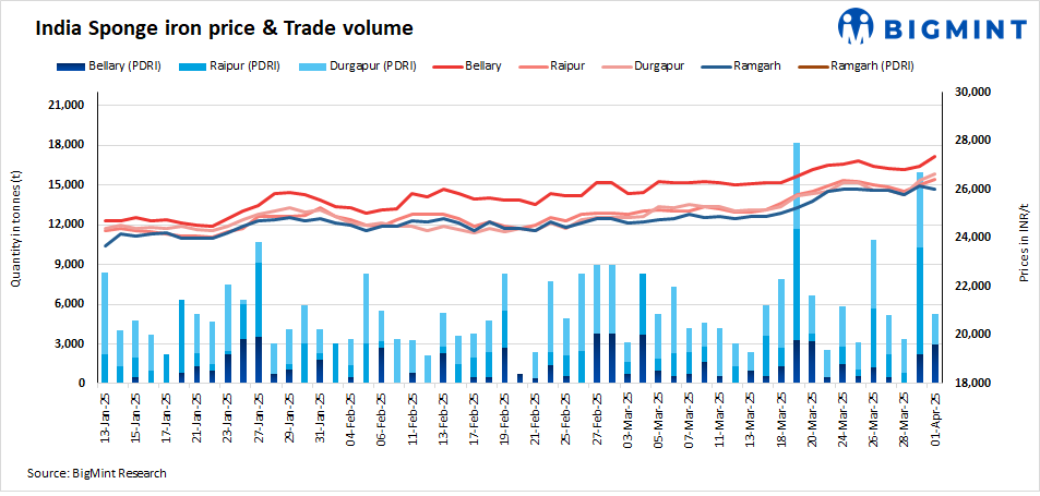 PDRI market prices closed at INR 25,100-27,600/t, while CDRI tags were at INR 27,900-32,300/t.