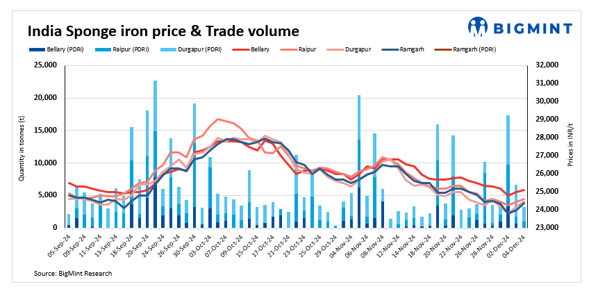 Deals of about 6,500 t of sponge iron were recorded today compared to 9,300 t on 3 December.