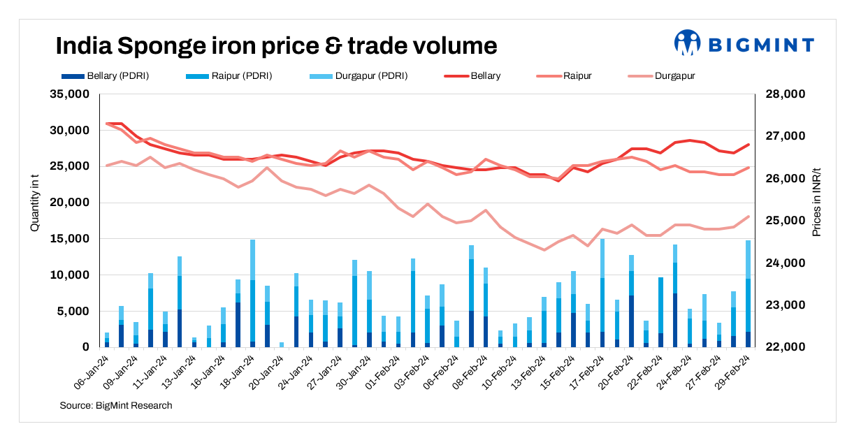 About 28,000 t of sponge iron transactions were recorded in the country on Thursday compared to 15,900 t on 28 February.
