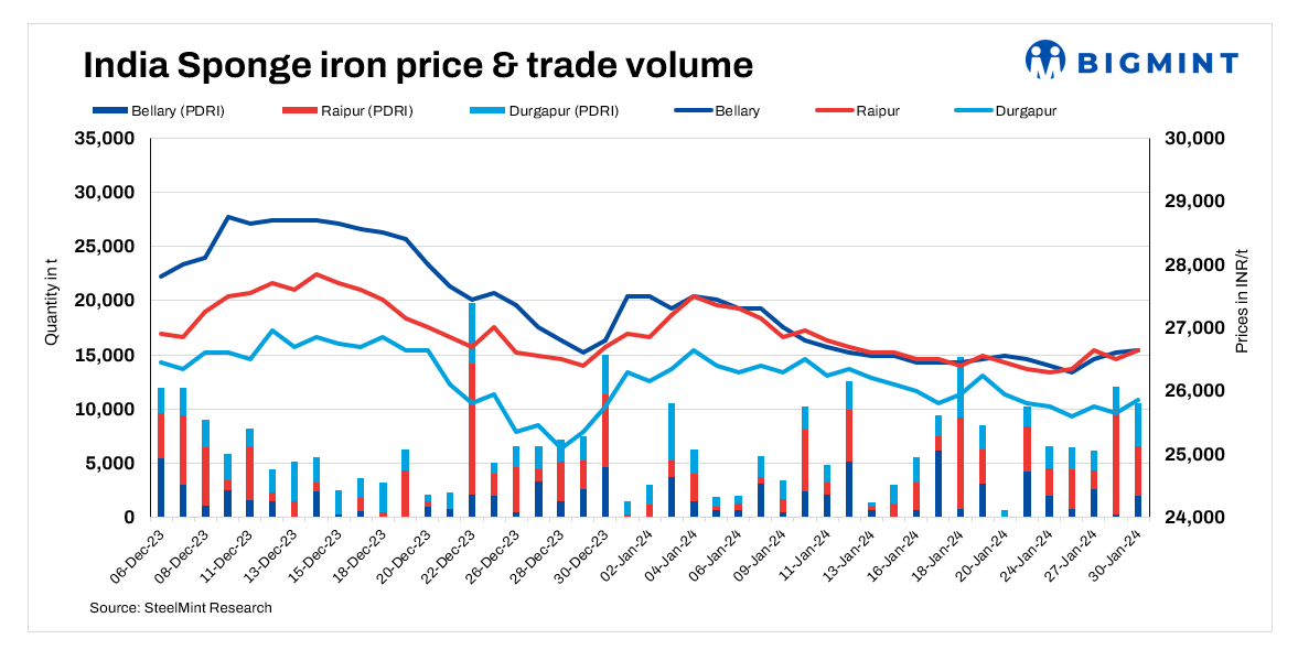PDRI market prices closed at a range of INR 25,400-27,350/t and CDRI prices at INR 26,650-31,500/t.