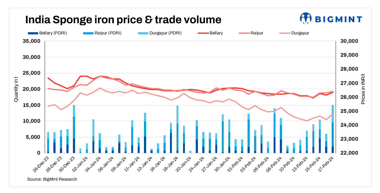 PDRI market prices closed at a range of INR 24,800-27,150/t and CDRI prices at INR 25,800-31,000/t.