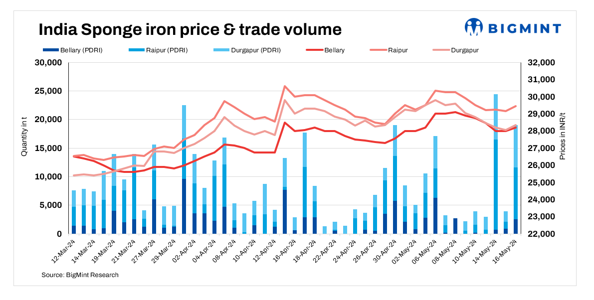 About 30,370 tonnes (t) of sponge iron transactions were recorded in the country on Thursday compared to 7,100 t on 15 May.