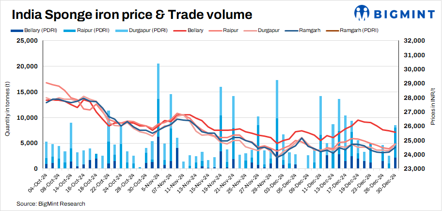 Transactions for about 11,900 t of sponge iron were recorded in the country on 30 December, up significantly from 2,900 t on 27 December.