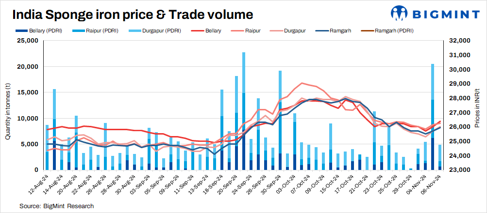 PDRI prices closed at INR 25,100-27,100/t, while CDRI was at INR 27,300-31,800/t.
