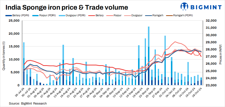 Approximately 4,150 t of sponge iron transactions were recorded today, down from 6,450 t on 17 October.