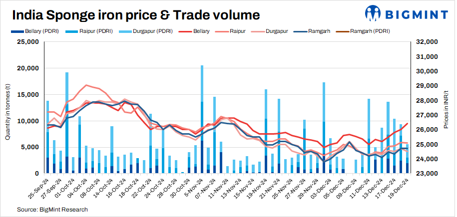 PDRI prices were assessed at INR 23,700-27,000/t and CDRI prices at INR 26,500-30,800/t.