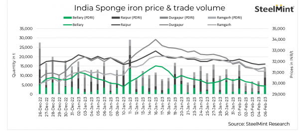 Sponge iron prices in India rose by INR 50-250/t in a few key locations today, while prices in Ramgarh witnessed a marginal drop of INR 50/t. Buying interest remained moderate throughout the day. However, spot trades rose significantly by 99% compared to Saturday because of the rebound in steel prices in the first half, which saw market participants taking positions.