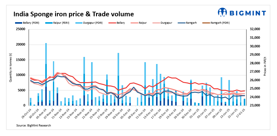 Deals for about 4,800 t of sponge iron were recorded today, compared to 5,850 t on 16 January.