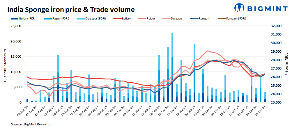 PDRI prices were assessed at INR 24,700-27,000/t and CDRI prices at INR 27,400-32,600/t.