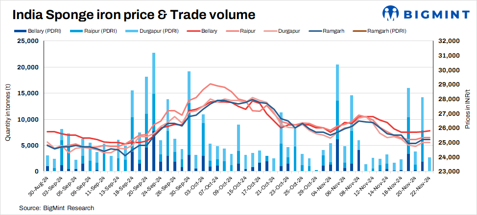 Only 6,950 t of sponge iron transactions were recorded in the country on Friday, compared to 24,350 t on 21 November.