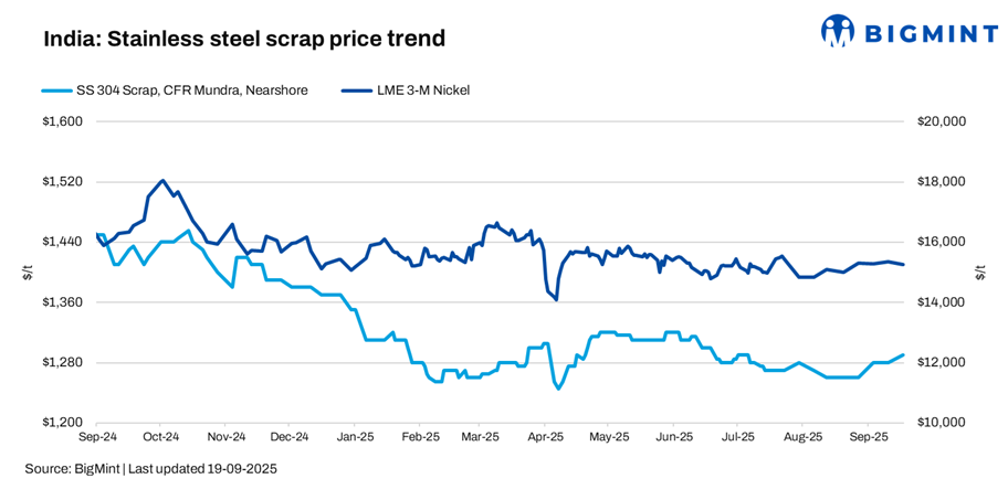India’s domestic and imported stainless steel (SS) scrap prices firmed this week, driven by stronger mill buying and steady finished steel demand, with rising raw material costs further fuelling the uptrend.