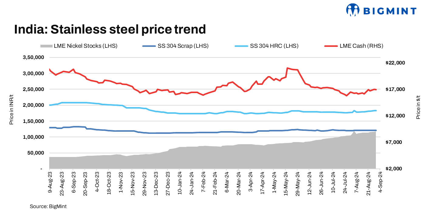India: Stainless steel prices hold steady w-o-w despite slide in LME nickel