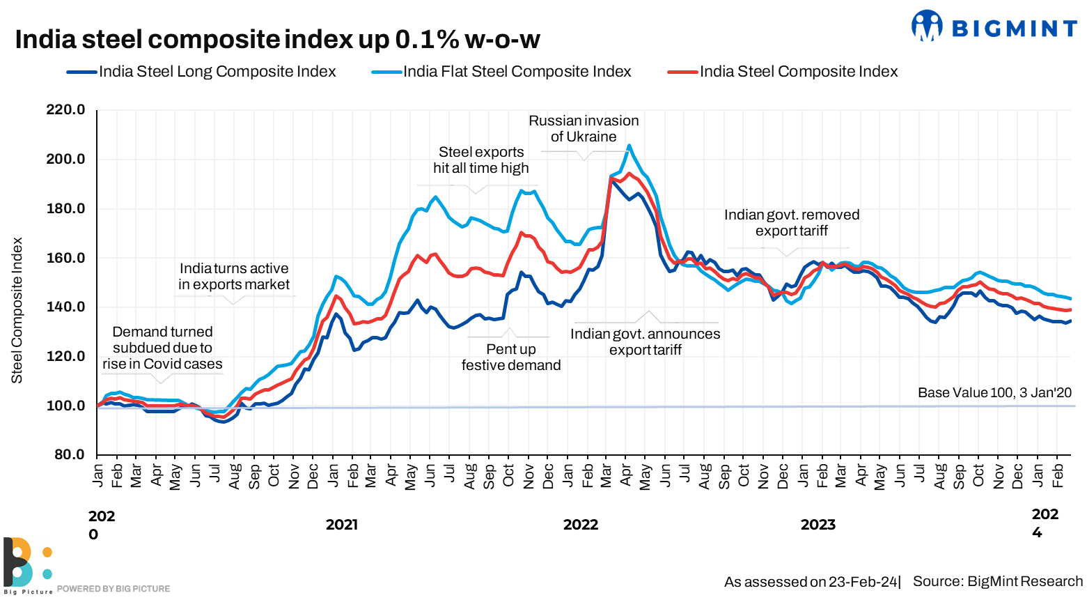 Morning Brief: The India Steel Composite Index remained stable w-o-w, closing at 138.90 points compared to 138.80 seen in the preceding week. However, overall, the index has been hovering at almost three-year lows since similar levels (137.3) were last seen in end-January, 2021. Steel prices have been in free-fall for almost five months now.