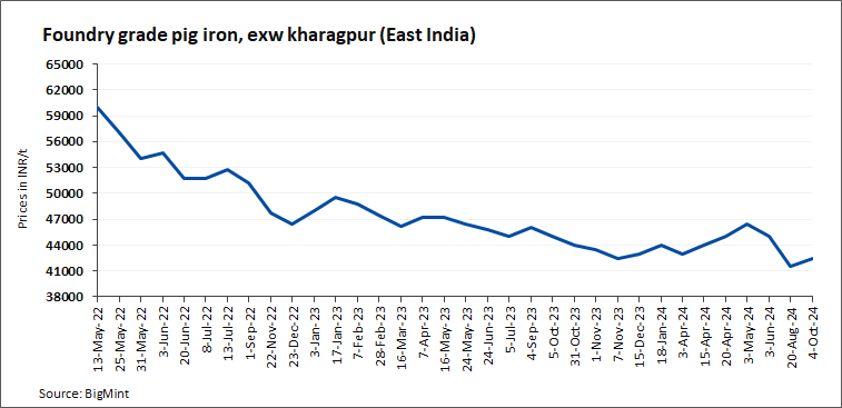Tata Metaliks increased pig iron prices for basic and foundry grades by INR 1,000/t ($12/t) due to short supply, scrap shortage, and active demand for finished products. Post-revision, prices of foundry-grade pig iron stand at INR 42,500/t ($506/t), while basic grade (Si 1.0-1.5%) prices are at INR 40,000/t ($476/t). Prices are exw-Kharagpur and applicable for Kolkata and Howrah markets.
