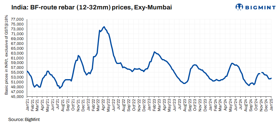 1. IF-rebar prices rise m-o-m: Induction furnace (IF) rebar trade prices rose m-o-m in December 2024 amid moderate buying activities across markets. In Mumbai, prices increased by INR 800/t ($9/t) m-o-m to INR 47,300/t ($552/t) exw.