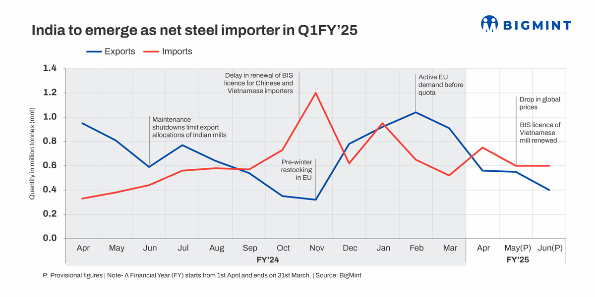 Morning Brief: India is set to become a net importer of steel in the first quarter of financial year 2024-25 (Q1FY’25), reveals data maintained with BigMint.