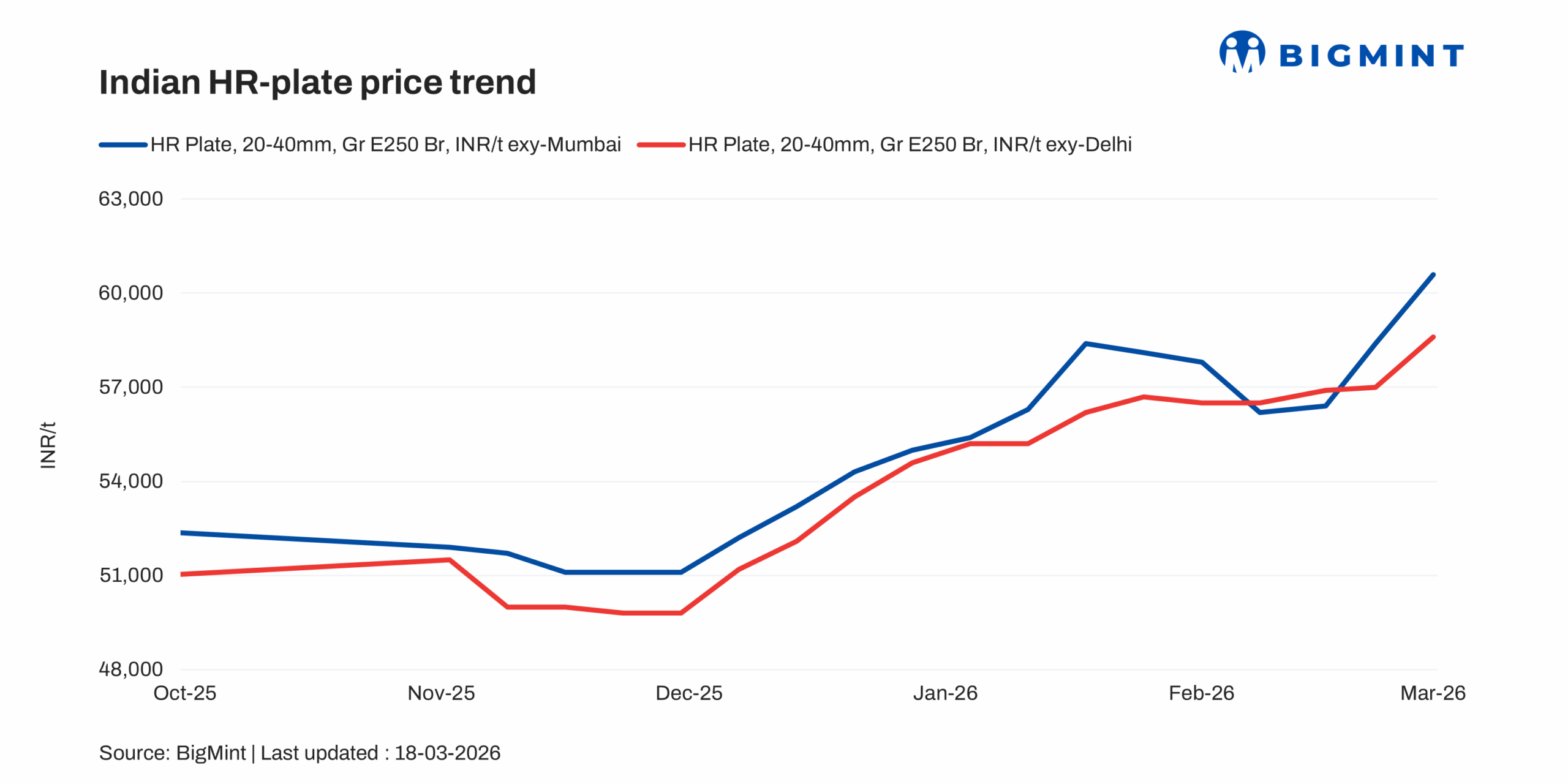 India: Trade-level HR plate prices rise w-o-w on mid-March’26 mill price hikes