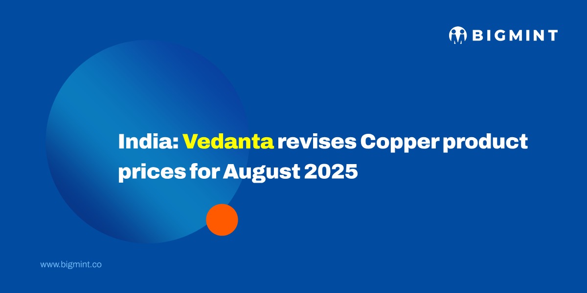 Vedanta’s Sterlite Copper has reduced its CCR 8-mm ex-plant prices to INR 920,457/t, excluding GST, from INR 932,683/t in Jul’25, effective 1 Aug’25. The drop reflects easing global prices following the US tariff announcement. Currently, LME copper is around $9,760/t, although averaging $9,780/t in Jul’25, up from $9,700/t in Jun’25. Indian cut cathode prices were INR 914,005/t exw in Aug’25, down INR 12,310/t m-o-m.