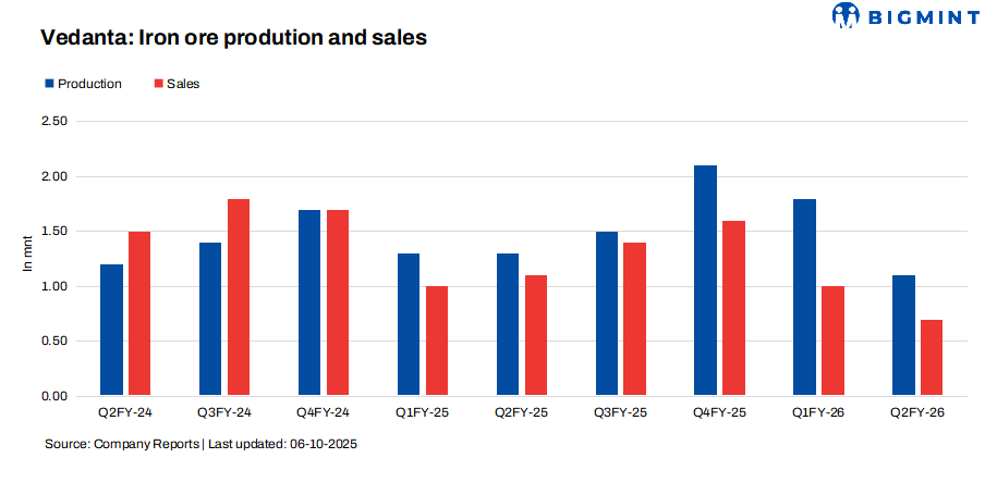 India: Vedanta’s iron ore output up, but H1 FY’26 sales fall 17% y-o-y