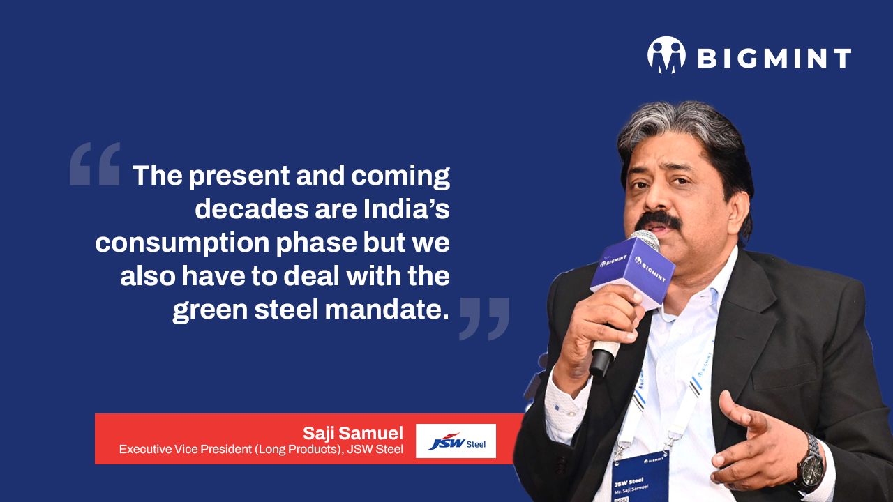 In an exclusive interview with BigMint, Saji Samuel, EVP (Long Products), JSW Steel, talks about India’s steel export prospects in a changing world, the impact of CBAM and high tariffs, the need for a mechanism to restrict steel dumping and China’s aggressive pricing strategies. Excerpts