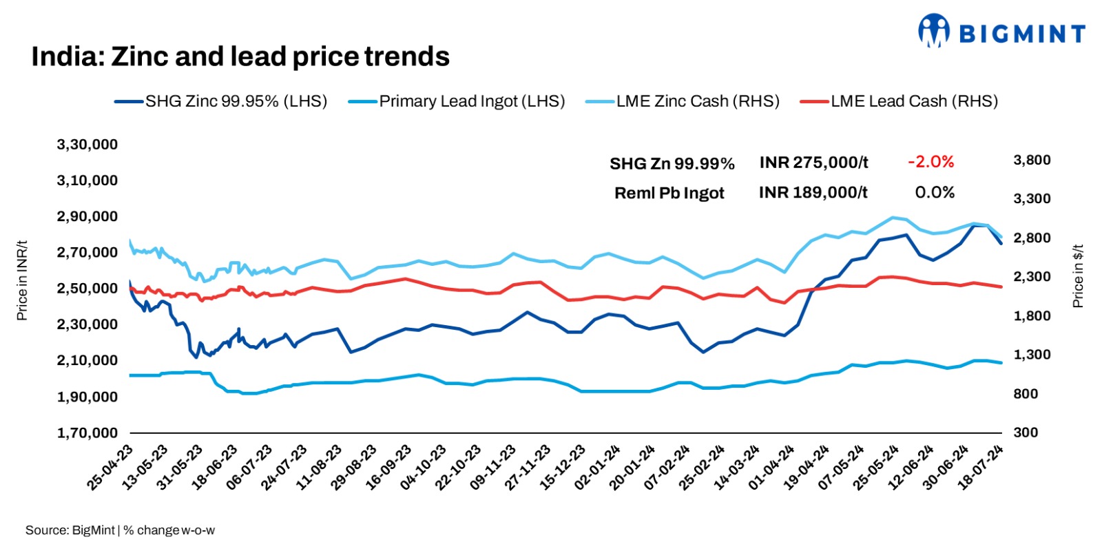 Indian zinc ingot prices fell 2% to INR 275,000/t due to low consumption, as per market sentiments, and a $150/t drop in LME. Lead prices remained steady w-o-w. An Australian lead imported scrap trade deal was reported at LME 3M (95%), CFR Chennai. Domestic remelted lead is priced at INR 189,000/t, ex-Delhi, and Middle East zinc diecast prices are $2,160/t CFR Mundra.