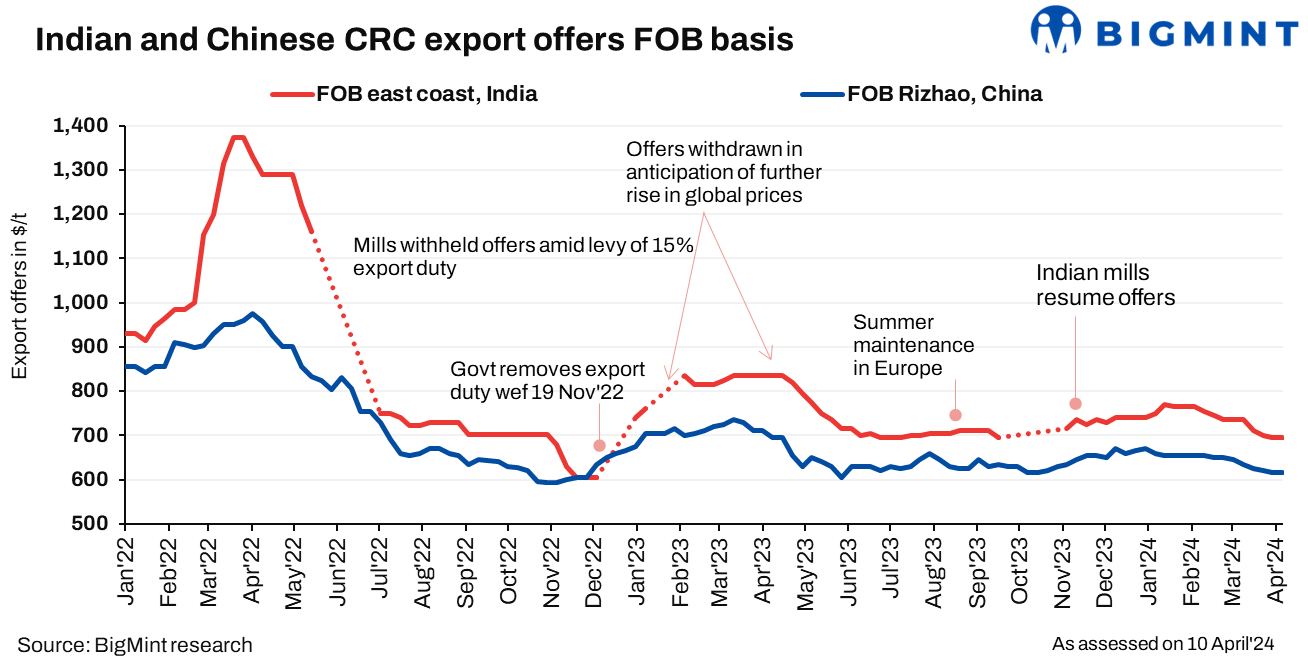 Indian CRC export offers to EU remain flat w-o-w amid slow market sentiments
